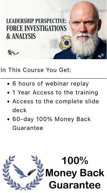 6 hour webinar for law enforcement leaders to understand the most damanging and common myths and errors surrounding their review of use of force incidents.